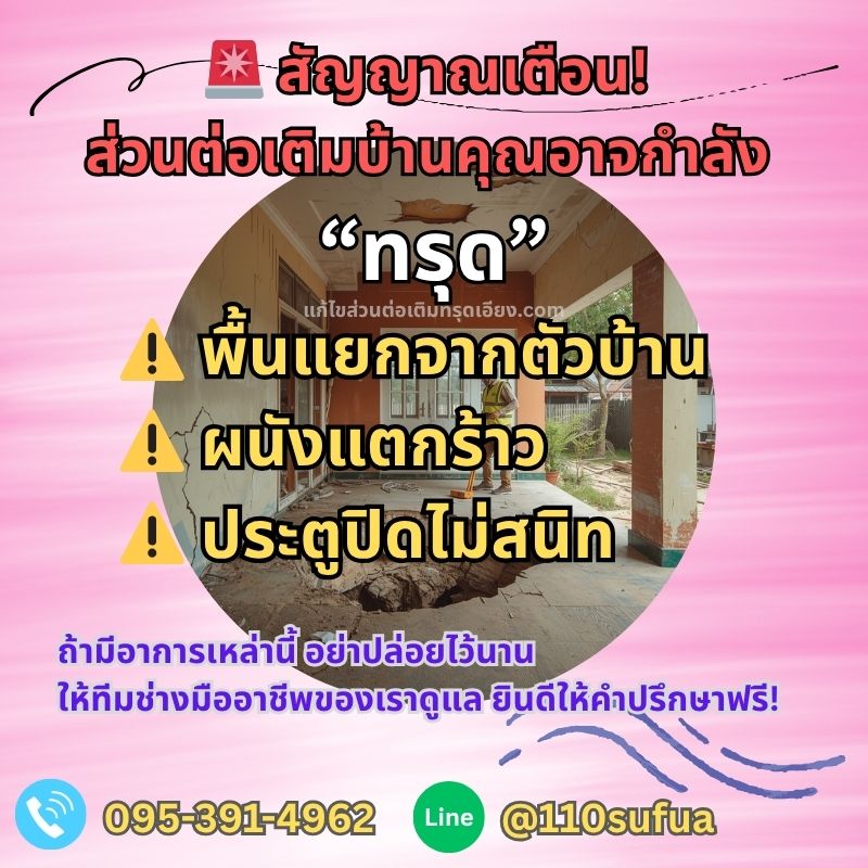 อาจทำให้โครงสร้างส่วนต่อเติมรับน้ำหนักไม่ไหว เกิดการทรุดตัว